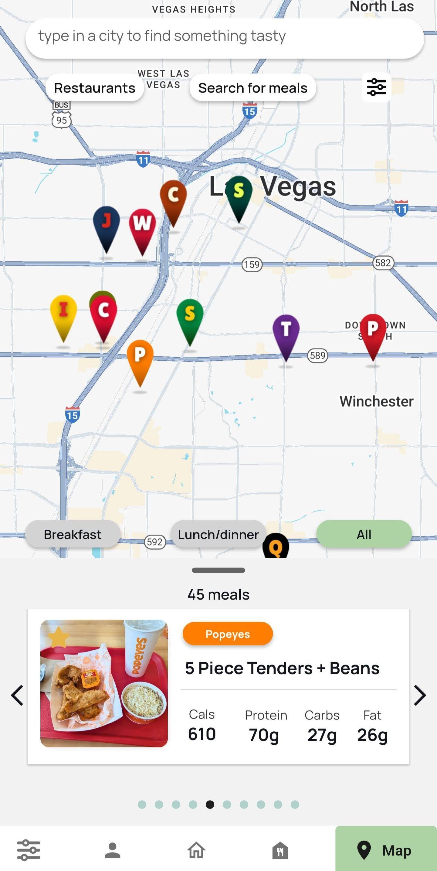 Fit Meals shows you the best nearby meals that match our dietary & lifestyle goals - so you can eat out smarter!
