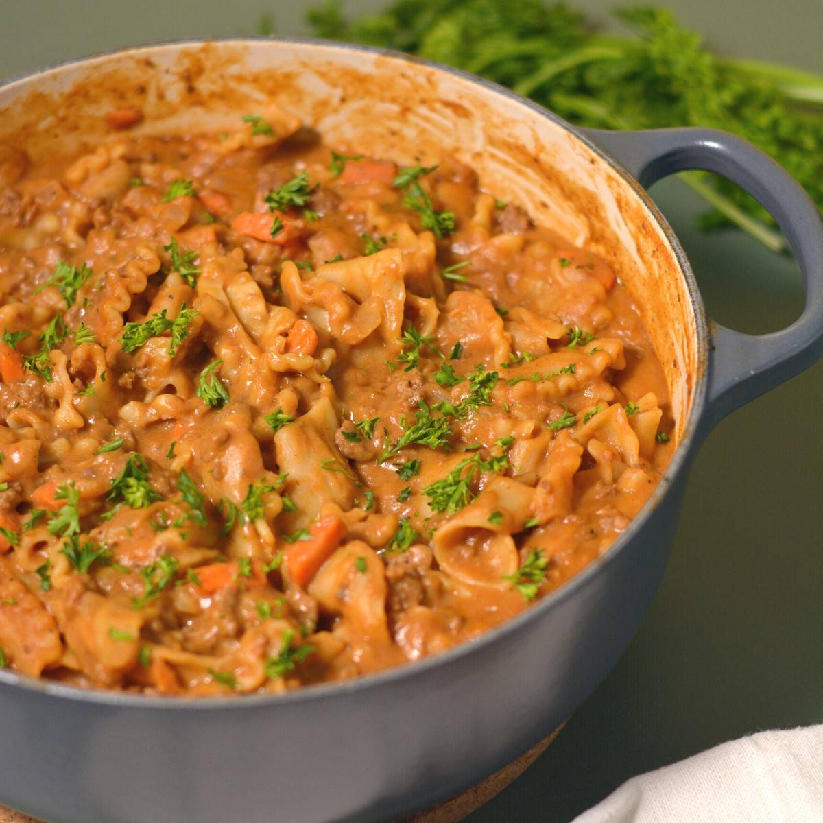 - Better for you Hamburger Helper (47g):  If you're prepping this into single-serve portions, add a splash of broth and Worcestershire sauce. When you reheat it, these will help rehydrate and amp up the flavors.